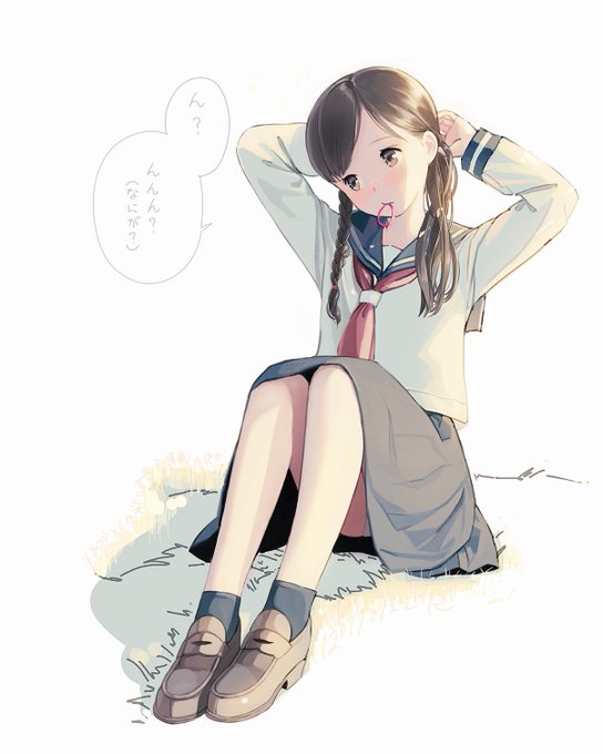 Potera A Twitter 片寄せ三つ編みのセーラー服の女の子 イラスト デジタル画 セーラー服 片寄せ三つ編み 茶髪 女の子 イラストの森